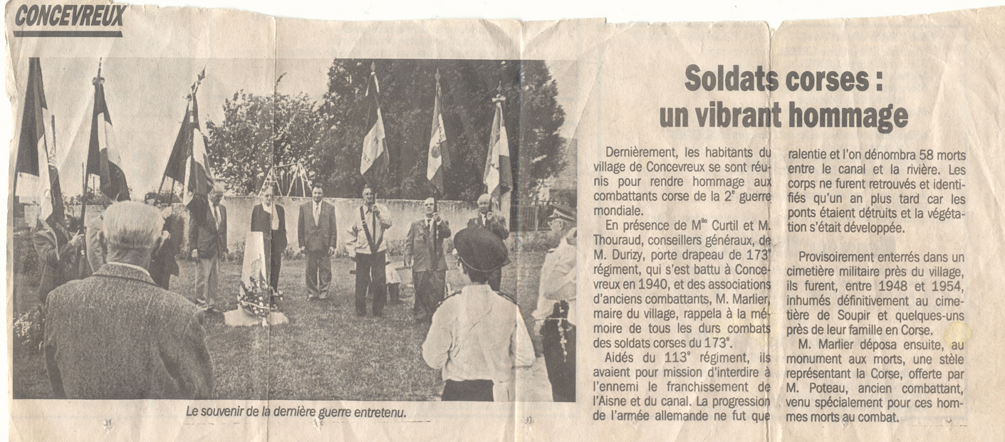 En 1995, une cérémonie commémorative a eu lieu à Concevreux en souvenir de ces événements. (coupure de presse : L'Union)