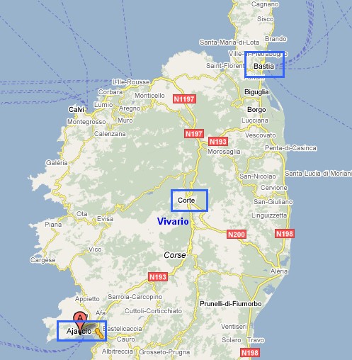 Départ d'Ajaccio en petit train sur une voie unique de 0,60m. Arrivée à Corte où il est séparé de ses camarades. Avec un autre (adjudant-chef) il est joint à des Bretons. Embarquement dans un camion vers Vivario.