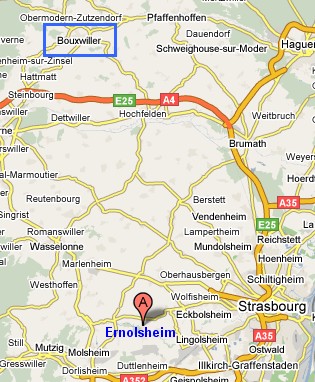 Puis à pied vers Bouxvillers (Bouxwiller) au quartier général de la division en D.C.A. Il y reste une quinzaine de jours